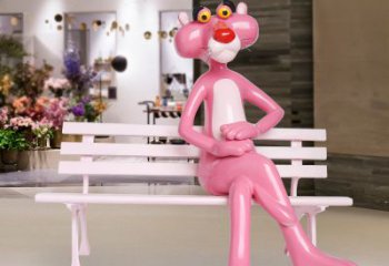 可愛彩繪玻璃鋼雕塑——粉紅豹
