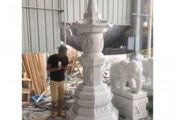 純銅舍利塔雕塑只是在望柱之間嵌上一整塊石雕欄板便算構(gòu)成,望柱頭多雕刻云紋,加工也比照簡潔。