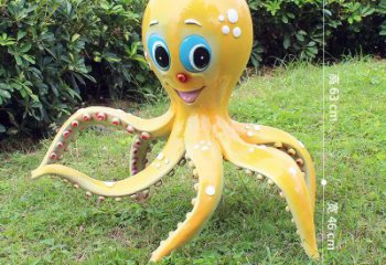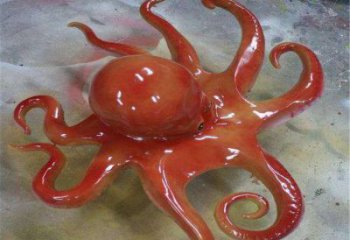 這是一座以章魚為原型的不銹鋼景觀動物雕塑,通體紅色,戴著墨鏡,姿態悠閑地趴在白色臺面上,為城市景觀增添時尚活力。