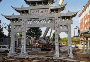 二、村莊石門牌的發展在國家提倡打造新型農村社區的發展,優化農村生活,打造美麗鄉村建設,文化牌坊雕塑已經逐漸的融入到現代的建筑當中。傳承牌坊雕塑不僅不會顯得突兀,反而為現代建筑增添了一些神秘古樸的氣息。所以大理石古老文化牌坊雕塑常常會出現村莊石門牌和農村石門的身影。